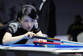 2014年10月16日,女子9球世锦赛正赛阶段进入第二轮,潘晓婷7-3战胜蒂卡露,击球瞬间不慎露出小蛮腰。