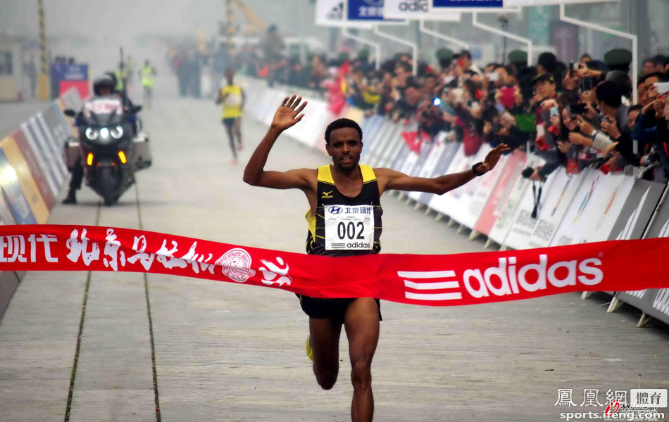 北京时间10月19日上午八点,2014年北京国际马拉松赛在天安门广场鸣枪起跑,经过两个多小时争夺,来自埃塞俄比亚的格布鲁以2小时10分41秒获得2014年北京国际马拉松赛全程冠军,另一位埃塞俄比亚选手则以2小时10分53秒夺得亚军,肯尼亚选手以2小时11分06秒获得第三名。