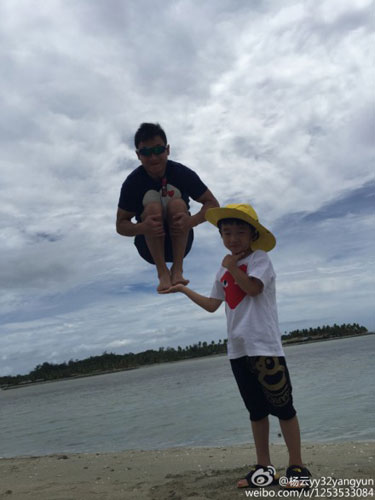 杨云晒全家度假照 杨阳洋单手“托起”杨威(图)