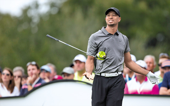 伍兹同样在上周五复出,今年8月美国PGA锦标赛后,他因伤休战四个月,上周是他伤愈后复出第一战。可是很遗憾,老虎遭遇开门黑,世界挑战赛第一轮打出77杆,排名垫底。接下来他能像女友一样强劲反弹吗?答案是否定的,第二轮的70杆和第三轮的69杆使他继续垫底,更祸不单行的是发烧也来凑热闹,一度烧到38.9摄氏度,第三轮比赛他不断用毛巾捂着嘴咳嗽,甚至还呕吐了一次。最后一轮噩梦仍在继续,老虎在第13号洞又搞砸了两个切杆,打出三柏忌,最终交出72杆。在整个世界挑战赛期间,伍兹始终在18位参赛选手中垫底,这是一个令人尴尬的位置,最终成绩上,他与亨特·马汉并列倒数第一,落后冠军26杆。
