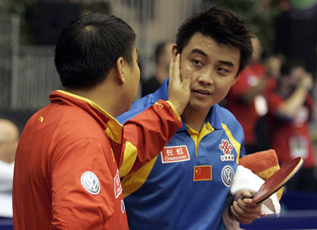 雅典奥运会男单决赛失利后刘国梁安慰王皓