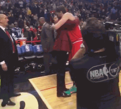 比赛结束,加索尔下场时,身穿西装的科比主动迎上,深深拥抱他昔日的兄弟,祝福他带领球队赢下胜利。加索尔也俯身下去,和科比拥抱良久。