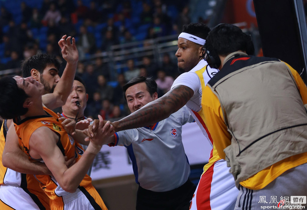 2014年12月26日,江苏常州,14/15赛季CBA常规赛第24轮,江苏同曦VS重庆翱龙。董俊江与麦克唐纳发生冲突,翱龙10号脖子伤痕明显。