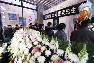 昨日8时左右,董云明早早赶到八宝山殡仪馆东礼堂外,和丈夫一同送别何振梁。董云明来自辽宁抚顺,本周五特意从老家来京。“何老在北京两次申奥的功劳是有目共睹的。”她说,何振梁是“一个圣洁的人。”