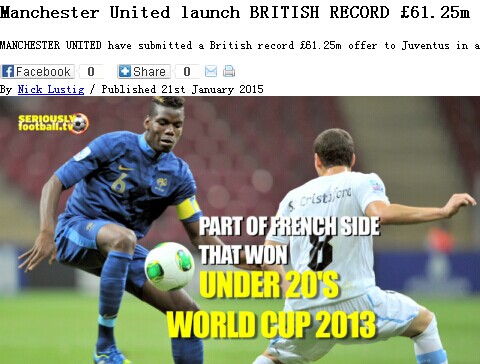 曝曼联6125万镑报价博格巴 尤文帝星或破英超转会纪录
