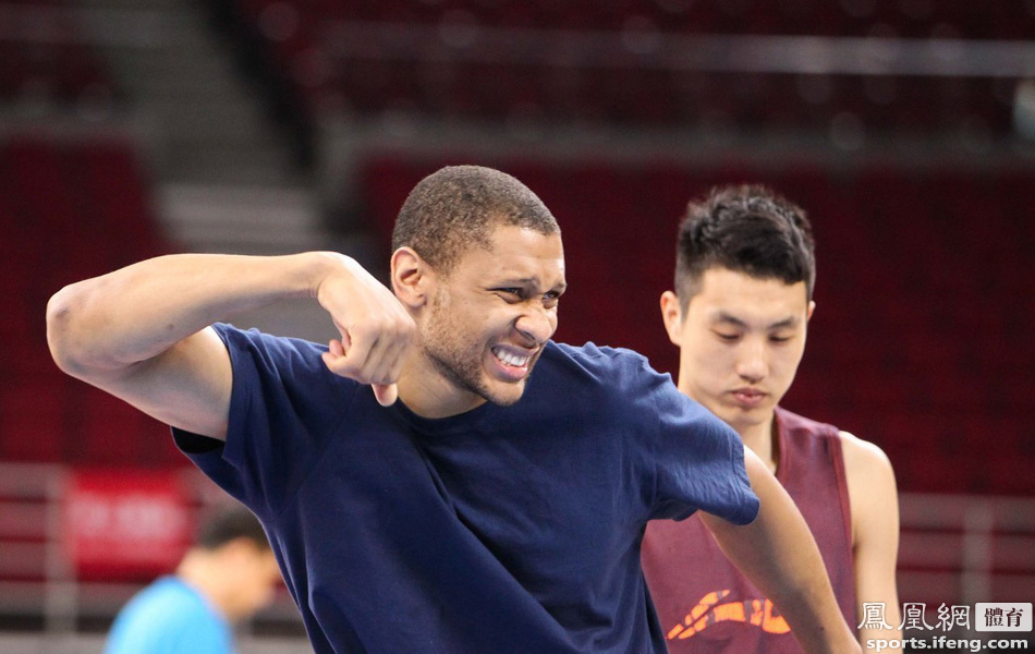 2015年3月3日,北京,2014-2015赛季CBA季后赛半决赛第4场前瞻,北京首钢训练备战,李根暴扣、莫里斯搞怪庆祝。