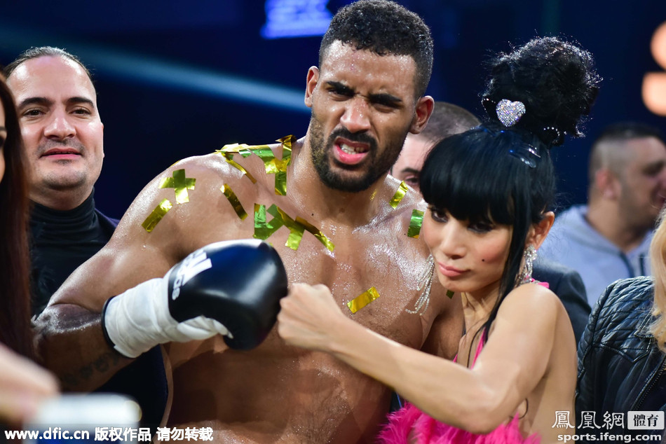 当地时间2015年3月8日,罗马尼亚普拉霍瓦县首府普洛耶什蒂,54岁美籍华裔艳星白灵助阵罗马尼亚拳赛,性感妖娆上演“美女与野兽”。