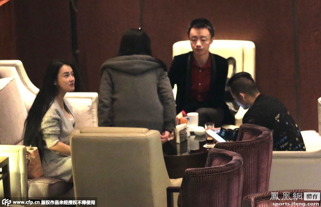 2015年3月10日,上海,拳王邹市明与妻子在酒店咖啡厅享受下午茶时光。