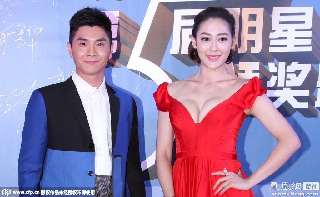 2015年3月18日,北京,奥运冠军、体操明星运动员邢傲伟身穿拼接西服出席公益活动,遭女嘉宾低胸礼服抢镜。