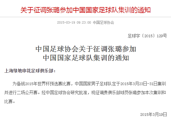 因张呈栋受伤递补进入国足名单的申花大将张璐,1987年出生,现年28岁,司职中场;此前一直效力于河南建业队,本赛季开始前刚加入上海申花队。顾操曾经是中国U-17国少队的队长,2006年未满18岁时就进入了上海申花一线队名单。不过2007年申花与联城合并后人员过剩,又将顾操调整回预备队。2008年,顾操转会至河南建业。2014年,首次入选国足大名单