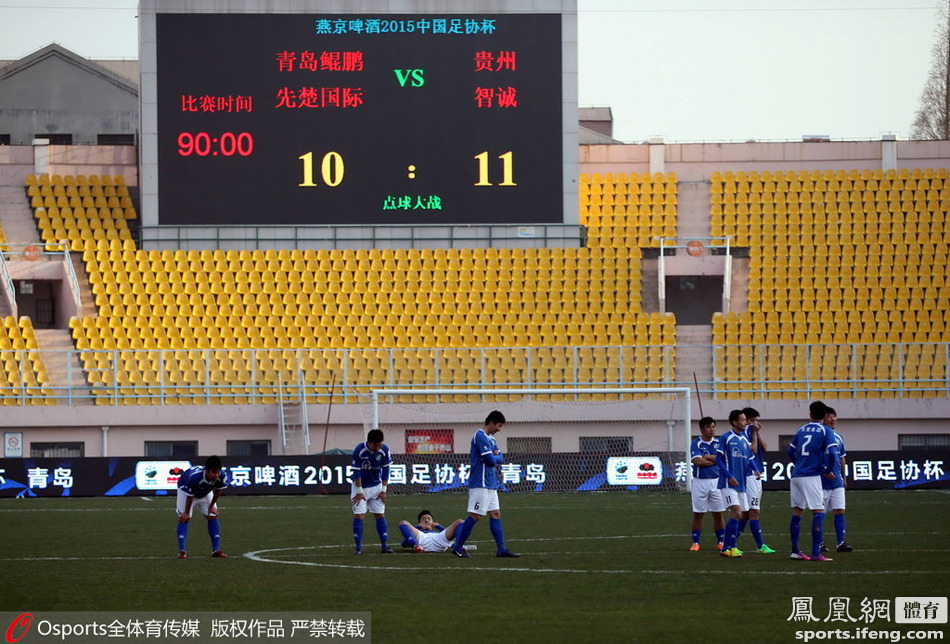 4月15日,足协杯第2轮的比赛,业余球队青岛鲲鹏和中甲球队贵州智诚的比赛,最终通过点球大战分出胜负。双方罚了14轮之后,贵州智诚才以10-9,总比分11-10涉险过关。而14轮点球大战,也创造了中国足球职业化以来点球大战的新纪录,2011赛季,陕西人和和广州恒大通过13轮点球大战的较量才分出胜负。