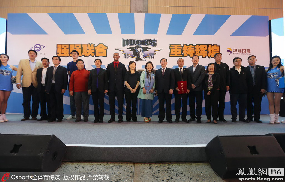 2015年4月23日,北京首钢新赛季主场移师万事达中心,马布里、吉喆出席发布会。