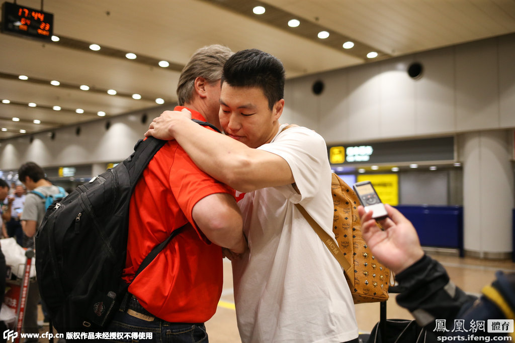 2015年4月23日,北京,中国男篮结束昆明集训抵京,李根与教练组不舍拥抱。