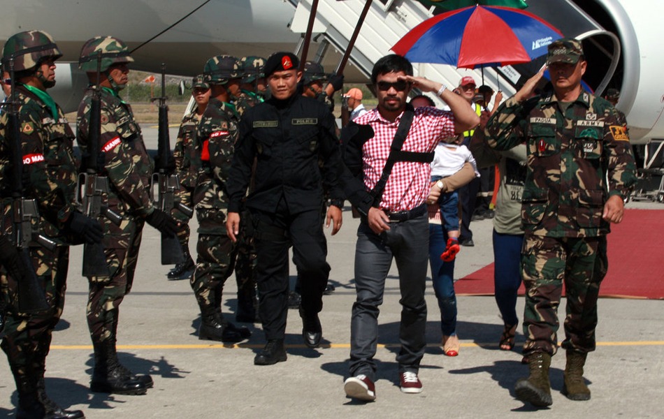 2015年5月15日,菲律宾,帕奎奥在结束与梅威瑟的比赛后回到家乡,乘坐花车街头游行并受到非凡礼遇。