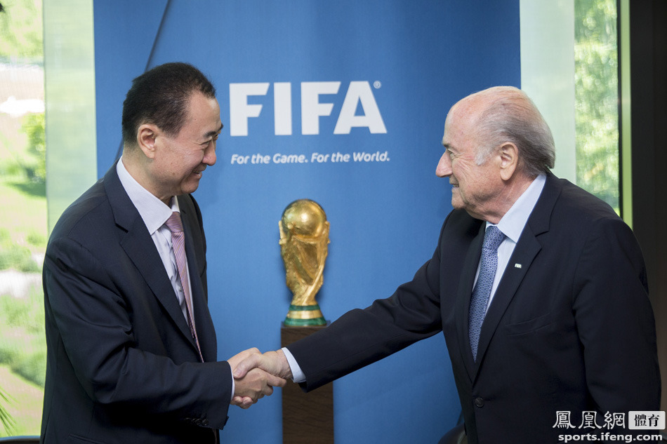 王健林在5月26日下午两点(当地时间)抵达瑞士,成为了第65届国际足联大会唯一一位非国际足联代表,也是国际足联大会历史上邀请的首位中国企业家。在苏黎世的三天,有频密的会晤在等着王健林。图为王健林与布拉特。