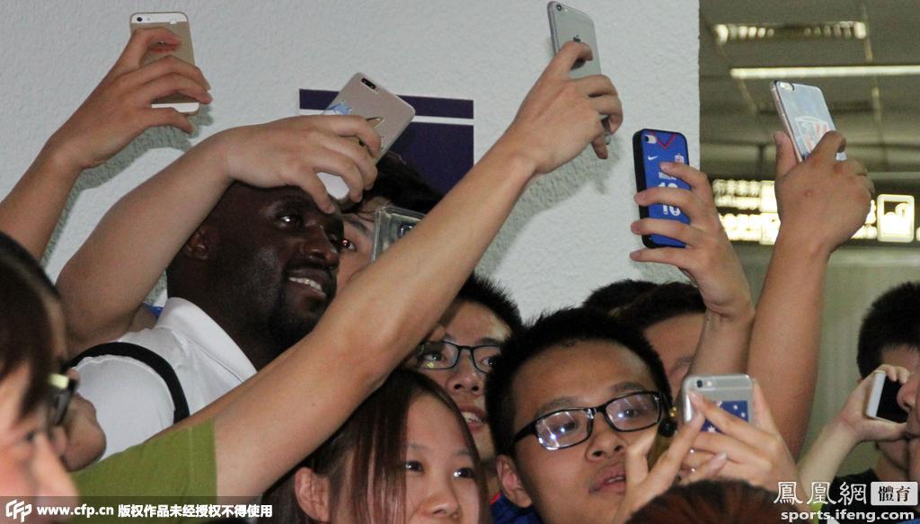 2015年6月25日,上海,马里国脚西索科抵沪加盟申花,机场与粉丝亲切自拍。