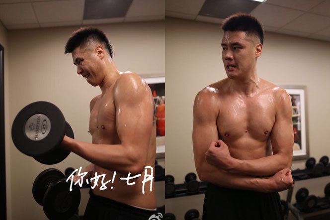 目前,结束特训的贺天举,计划在费城继续通过参加有NBA球员参加的全场5对5比赛保持状态,并将于7月5日启程前往新奥尔良与球队汇合,参加鹈鹕安排的训练营。近日他展示了一下自己的肌肉。