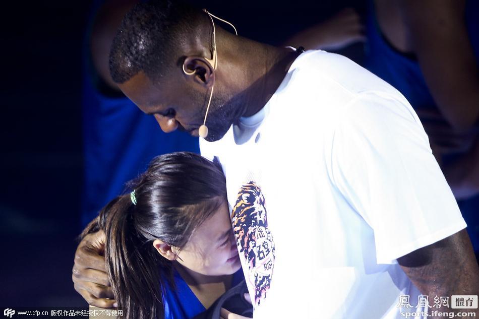 2015年8月18日,上海,2015詹姆斯中国行次日,詹姆斯现身江湾体育场出席球迷见面会。在活动现场,詹姆斯秀了一把球技,特别是一记飞扣引得全场欢呼。在之后的互动环节中,一名激动的女球迷抱着詹皇激动地嚎啕大哭。