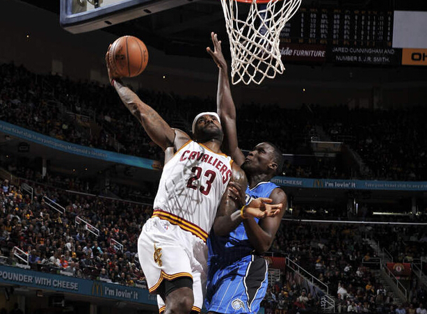 高清:骑士vs魔术 詹姆斯抡臂隔人飞扣