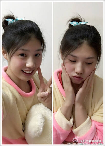 17岁游泳小丫晒睡前萌照 调侃:圆脸和花苞头更配