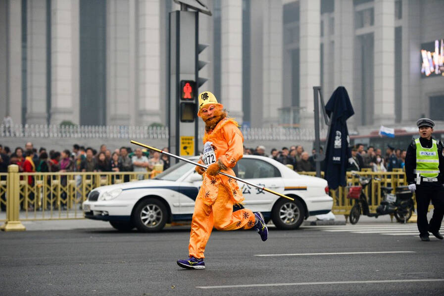 当“孙悟空”在马拉松跑道上,瞬间成为焦点
