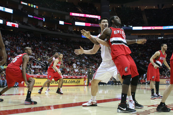 08-09赛季火箭陷入动荡,麦蒂和球队彻底决裂,私自宣布接受微创手术。没有了麦蒂的帮助,姚明率队杀入季后赛,首轮面对开拓者的挑战。第一场在丰田中心,姚明在阿尔德里奇和奥登的夹击下,9投全中弹无虚发,半场时间贡献24分9个篮板球,轻松愉快的教做人系列,火箭队以108-81取得开门红。