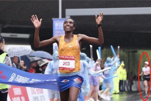 而有媒体曝出,苏州(太湖)马拉松递国旗事件并不是个例,在今年的成都马拉松赛女子组的比赛中也曾出现类似一幕,终点前也上演了中国选手和非洲选手厮杀的激烈场面,站在赛道的志愿者将国旗递给了中国选手李芷萱,所幸李芷萱冲刺能力强,在距离终点200米时,在弯道实现反超,甩开对手,强力冲刺,最终拿到了女子组冠军,但她拿到国旗后,也没顾上展开国旗。