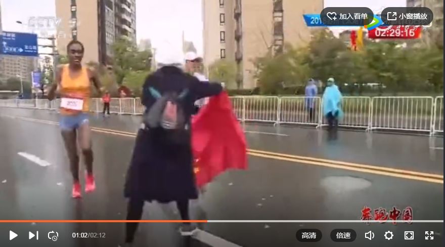 “就不能在冲过终点后递国旗吗?马拉松啊,人都累成啥样了,你这个时候去干扰选手,你们是对方派来的吗?”