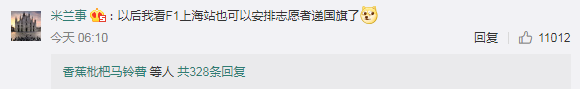 “以后我看F1上海站也可以安排志愿者递国旗了”。