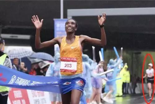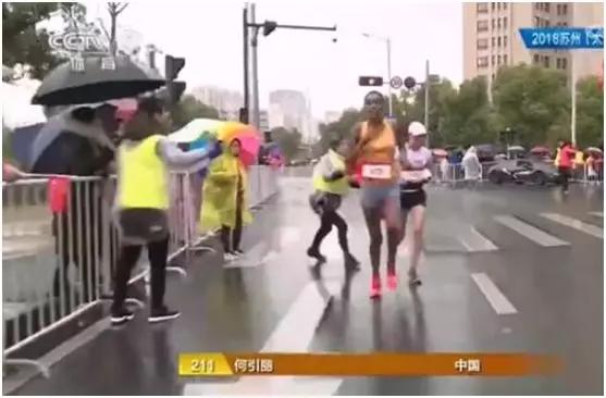 当埃塞俄比亚选手冲过终点挥手庆祝的一刻,我们还能捕捉到何引丽不放弃奔跑的姿态。