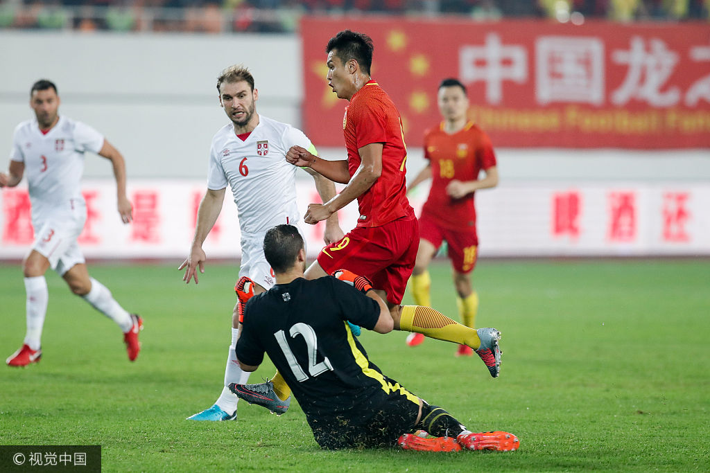 北京时间11月10日晚,中国国家男足在广州同塞尔维亚国家队展开热身赛,最终国足0-2完败。上半场利亚伊奇率先破门,下半场米特洛维奇锁定胜局。本场比赛颜骏凌多次精彩扑救未能救主,武磊错失良机。/n